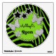This chic and trendy customizable wall decal has a lime green faux glitter (PRINTED) and black zebra print animal stripes with a polka dots pattern and silver faux glitter (PRINTED) butterflies, stars, hearts, and a funky flower, with text boxes to put a name and other text (room, rocks, etc.) on it that will appeal to a modern, young girl. You can select from 3 sizes. Everything will print as you see it on your monitor, so if you need help customizing your text, or if you would like it in another color combination, please email niteowlstudio@gmail.com BEFORE you order.