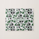 This fun soccer themed jigsaw puzzle suitable for girls or boys features a seemingly endless pattern of soccer balls in varying sizes and at varying depths, turned every which way - some of the soccer balls' typically black panels have been recolored green - customize with soccer player's name - by katz_d_zynes