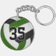 This team colors volleyball themed keychain for girls or boys features the realistic image of a volleyball that has green, black and white panels, upon which you can customize the player's name and court position, plus school or club name and mascot name on the front and jersey number on the back - by katz_d_zynes