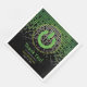 Green, black, and grey (gray) raining pixel gamer or video game Bar Mitzvah personalized paper napkins.