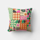 Green Black Vintage Abstract geometric pattern Throw Pillow
