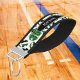 Volleyball themed wrist keychain with pattern of green, black & white volleyballs that can be personalized with the athlete's name & jersey number - by katz_d_zynes