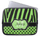 This personalized lime green, black, and white zebra stripes and polka dots laptop sleeve has text boxes for you to add your name and monogram. If you need help customizing this with your own info, please email niteowlstudio@gmail.com for help.
