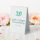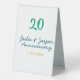 Green blue 20th anniversary name date orange table tent