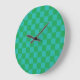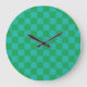 Green Blue Checkered Gingham Pattern Large Clock