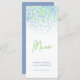 Modern dab art graded painted wedding dinner menu or special event menu. Edit this 4 course menu with your own words. Simple yet modern dot watercolor art menu. Ideal for blue green weddings or event. © Design and original watercolor painting by www.mylittleedenweddings.com on zazzle.