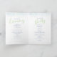 Double-sided modern calligraphy white and green blue dab modern art wedding program. Edit this wedding program with your own name, dates, ceremony wording, wedding party attendants and thanks. Simple yet elegant program simply replace sample text with your own wedding information details. Other matching items and color options available. Original modern art watercolor dabs and design by www.mylittleedenweddings.com