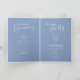 Double-sided modern calligraphy white and green blue dab modern art wedding program. Edit this wedding program with your own name, dates, ceremony wording, wedding party attendants and thanks. Simple yet elegant program simply replace sample text with your own wedding information details. Original art and design by www.mylittleedenweddings.com