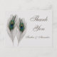 Green blue two peacock feathers on light silver background wedding Thank you Postcard