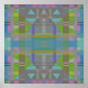 Colorful geometric shapes pattern, custom made artwork in prominent shades of green, blue, purple, pink and with additional shades of silver, gray, gold. Elegant trendy digital art design.