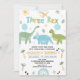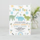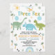 Green Blue Three Rex Dinosaur 3rd Birthday Invitation