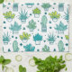Green & Blue Watercolor Succulent Pattern Towel