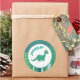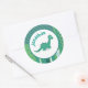 Cute smiling dinosaur in round frame. Personalized name dino, blue green, teal colorful pattern for boys