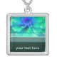 Green & Blue Zinnia Silver Plated Necklace