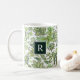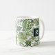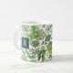 Custom printed coffee mugs with a whimsical floral pattern in shades of green and white. Personalize it with your monogram initial in a dark green square frame on both sides of the mug. Use the design tools to edit the text fonts and colors and add your own photos to create a one of a kind design.