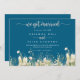 This green boho wildflower navy elopement announcement has a beautiful rustic design. The design features watercolor pink, blush, yellow, and white wildflowers arranged in elegant bouquets.