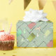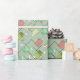 This original design combines lime green, purple, aqua, and pink in a zany, retro futuristic way to wrap a gift.