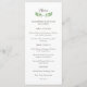 This elegant botanical wedding menu card design features a green sprig of leaves, on a clean white background. We have used art from LABFcreations.