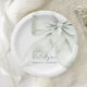 Green Bow Bridal Shower Paper Plates. This elegant design features a soft sage green bow that symbolizes the beautiful journey of “tying the knot,” adding a meaningful touch to your celebration, perfect for a bride-to-be who values both sophistication and simplicity.