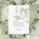 Green Bow Bridal Shower Thank You Card. This elegant design features a soft sage green bow that symbolizes the beautiful journey of “tying the knot,” adding a meaningful touch to your celebration, perfect for a bride-to-be who values both sophistication and simplicity.