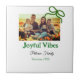 Green bow joyful Vibes add family photo name Ceramic Tile
