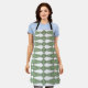 This apron has an art deco design of triangles and diamonds that look like bowties in light green and sage green.