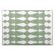 This cloth placemat has an art deco design of triangles and diamonds that look like bowties in light green and sage green.