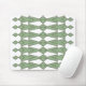 This mouse pad has an art deco design of triangles and diamonds that look like bowties in light green and sage green.