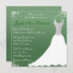 Plain white envelopes are included with paper invitations and will come to fit the invitation size you select. If you don’t need the envelopes, you may choose to not receive them by selecting the dropdown below "Envelopes" and choosing "None." If you’d like to have a design on your envelopes, you can browse all of these available envelopes to find the design that complements your Green Bridal Shower Wedding Gown Invitation.