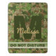 Bring tough, feminine energy to your door with this personalized glitter camouflage office sign in classic outdoorsy colors. Featuring a bold faux-glitter camo pattern in green, brown, and tan, this design includes a strong sans-serif monogram, a graceful script name, and a customizable bottom stripe that reads “Do Not Disturb” by default. Prefer a different vibe? Personalize the text with phrases like “Welcome,” “In Session,” “Quiet Please,” or “Out of Office.”
