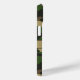 Customize this multi-hued green and brown camouflage iPhone 15 case with your your name in a trendy modern CAP font in brown on khaki. It's masculine and perfect for your favorite military, hunting, country or outdoorsman!