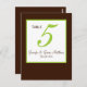 Green Brown Wedding Table Number Card