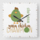 Green & Brown Yarn Chicken Champion Square Wall Clock