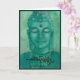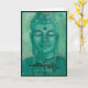 A monochromatic portrait of the Thai Buddha in shades of calming greens. He is calm, peaceful, and introspective. A slight smile graces his face and his hand can be seen with the Abhaya Mudra gesture. The palm of the right hand faces outwards and the fingers are upright and joined. This gesture was shown by Buddha immediately after attaining enlightenment. It symbolizes strength and inner security.