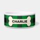 Green Buffalo Check Dog Bone Rustic Pet Name Bowl
