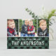 Green Buffalo Plaid Family Name Photo Collage Holiday Card