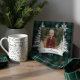 Rustic farm fresh Christmas trees family photo keepsake plaque. The plaque can be customized with the family name, the year, and the photo. Green checkerboard plaid background with rustic pine trees and snowflakes. The family name is displayed in a white banner. Artwork by Moodthology Papery.