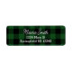 Return address labels in a cozy winter style with feminine text on a green buffalo plaid background. Customize by adding your name and address in the editing window.