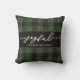 Rustic Green Plaid Holiday Print with Joyful Script and Personalized Family Name Buffalo Plaid Christmas Throw Pillow.