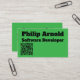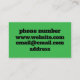 The clean layout and vibrant green background give the card a fresh and eye-catching appearance, while the black text adds a professional and timeless touch. Optional enhancements such as matte or glossy finishes can further elevate the look, making this business card both functional and visually appealing.