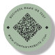 Customizable QR Code sticker, with a sage green background. To generate a new QR code on the design, add your website URL or social media handle in the " personalize this template" feature.