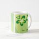 This pretty mug is perfect for any butterfly lover. It has a green background with lots of green butterflies all over it. Each side has a custom space for a name or message.