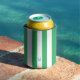 Green Cabana Stripe & Personalized Blue Monogram Can Cooler