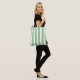 Green Cabana Stripe & Personalized Pink Monogram Tote Bag