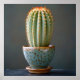 Green Cactus in a Teal Ceramic Pot Photography Poster
