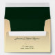 Simple, minimalist, romantic faux gold wedding invitation 5x7 envelope with return address, emerald green inside and gold rope heart.
