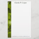 A vertical green camouflage border on the left of this letterhead makes a unique statement. Change the existing upper text to add your own name and the lower text to add your address to personalize your stationary.