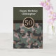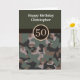 A personalized green camouflage 50th birthday card for him, which you will be able to easily personalize the front with the recipient's name. The inside reads a birthday message which can also be personalized if wanted. The back features the solid green and camo design. Please see all photos. This green camo personalized 50th birthday card for him would make a unique keepsake.