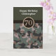 A personalized green camouflage 70th birthday card for him, which you will be able to easily personalize the front with the recipient's name. The inside reads a birthday message which can also be personalized if wanted. The back features the solid green and camo design. Please see all photos. This green camo personalized 70th birthday card for him would make a unique keepsake.