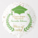 Custom balloon for the perfect decor touch for that special high school or college graduation party with your personalized text. Features image of a green color grad cap and laurel wreath accented with faux gold confetti. Your choice of several sizes. See matching napkins, paper plates and other color groups also available in this same design